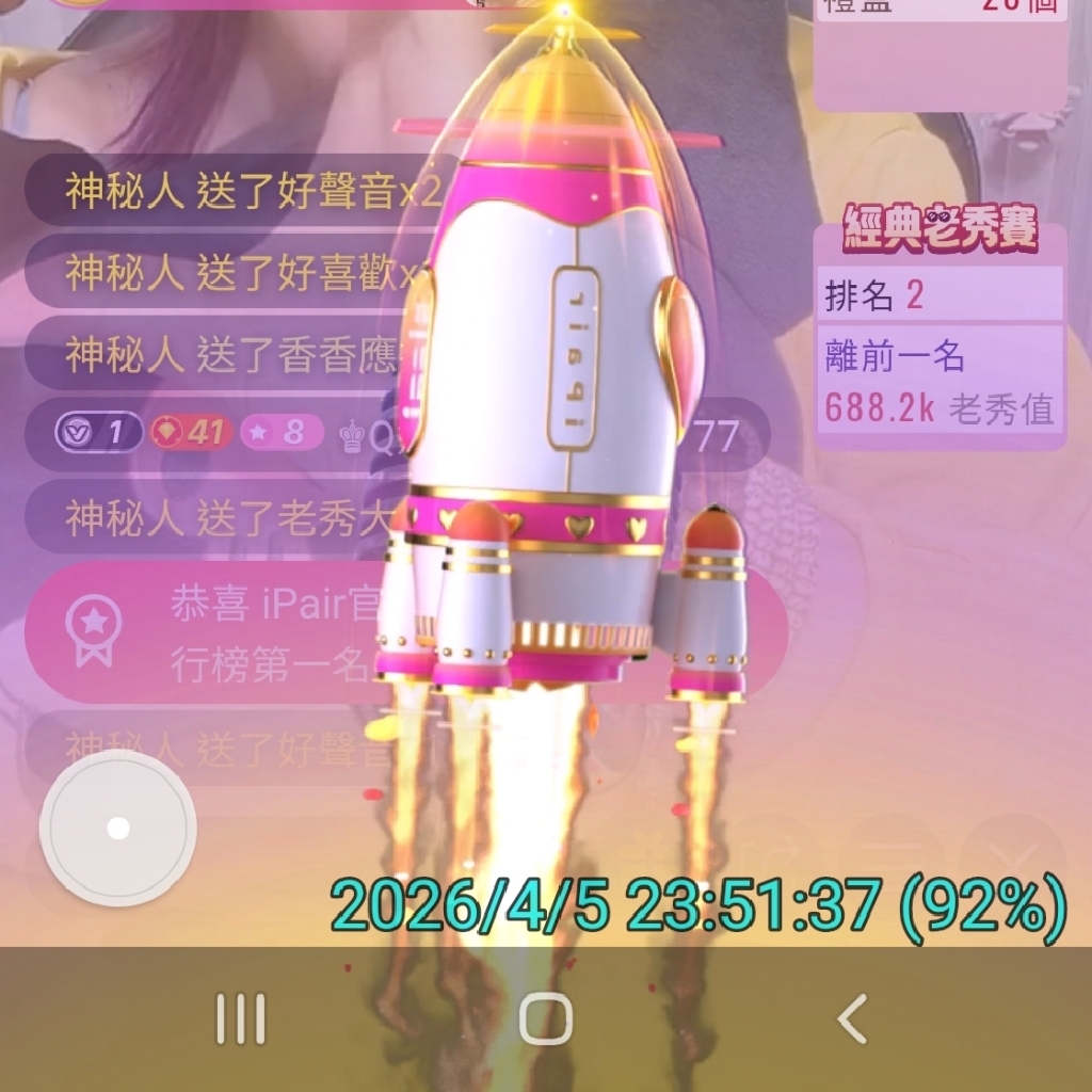 新秀賽前20名主播 8/21~8/27 每日開播滿2小時,系統將會自動發送10包100元紅包鼓勵主播(當日單次開播獎勵發送一次為上限,下播後未開啟紅包當日不再發送)。